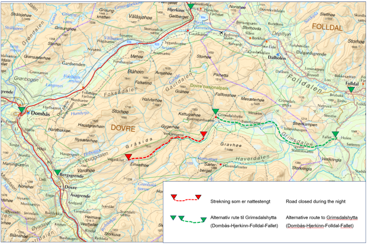 Gjennom å kun stenge deler av vegen nattestid, håper vi at ulempene for brukerne av området blir akseptable. Behov for tilkomst til Grimsdalshytta med bil på nattestid må skje fra øst.